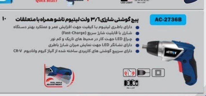 پیچ گوشتی شارژی اکتیو مدل AC2736B ولتاژ ۳.۶ ولت