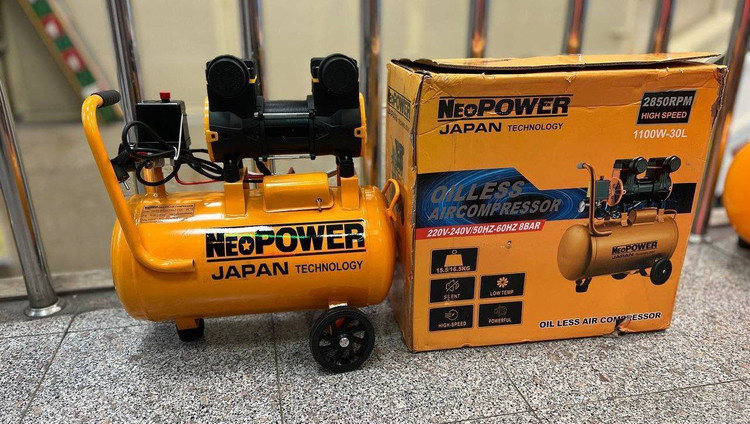 کمپرسور 30 لیتری سایلنت دو سیلندر نیوپاور مدل تکنولوژی ژاپن مدل 1100V