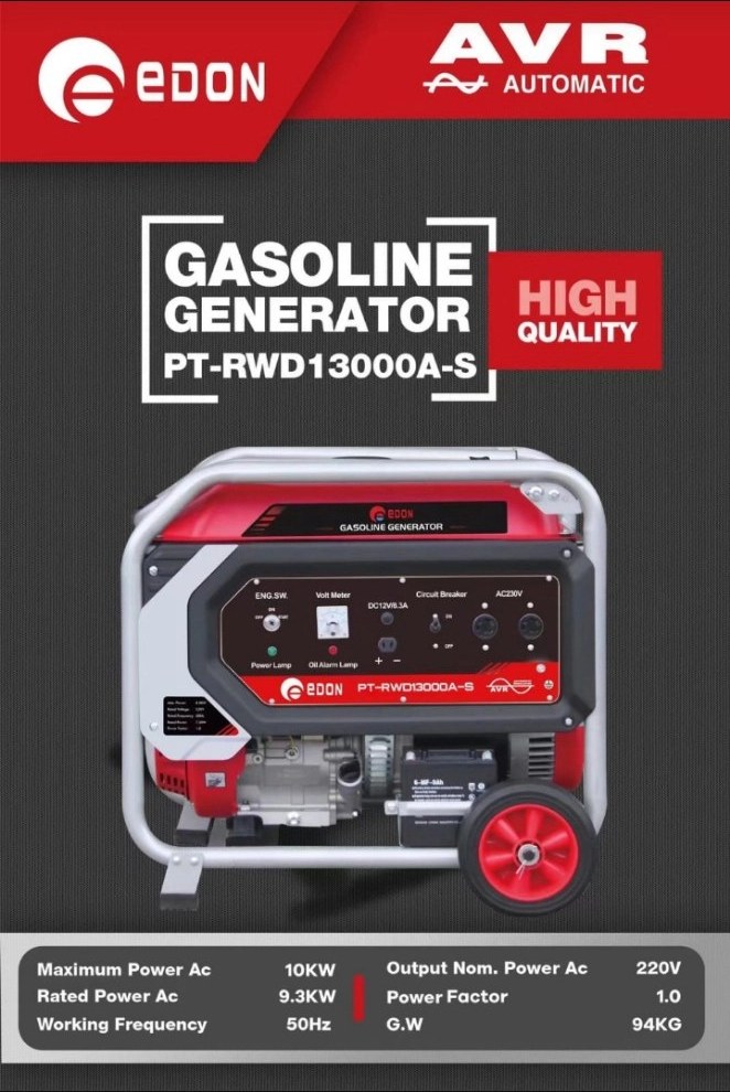 موتور برق ادون مدل RWD13000A یک ژنراتور بنزینی تک فاز با ظرفیت ۱۰ کیلووات است که برای تأمین برق در مصارف خانگی، ویلایی و کارگاههای کوچک طراحی شده است. این مدل با موتور تک سیلندر چهارزمانه و خروجی ۲۳۰ ولت AC، مناسب برای راهاندازی لوازم برقی پرمصرف مانند کولر، یخچال و ابزارهای کارگاهی است12. ویژگیهایی مانند سیستم AVR برای تثبیت ولتاژ و قطعکن اتوماتیک روغن، ایمنی و پایداری آن را افزایش میدهد3. این محصول ساخت چین با کیفیت ساخت بالا و سفارش روسیه گزارش شده است4.